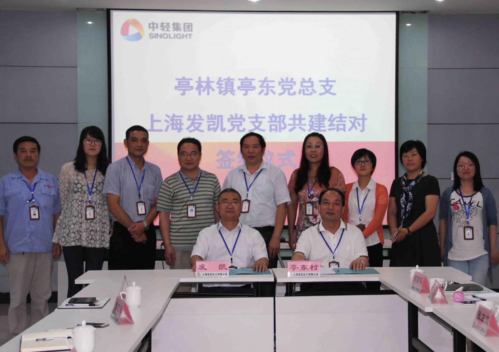 為了認(rèn)真貫徹落實中共上海市委組織部關(guān)于落實中央進(jìn)一步加快社會主義現(xiàn)代化新農(nóng)村建設(shè)的要求,承擔(dān)國有企業(yè)相應(yīng)的社會責(zé)任;特別是與企業(yè)駐地村鎮(zhèn)加強(qiáng)溝通交流,2014年8月20日下午,上海發(fā)凱化工有限公司黨支部與亭林鎮(zhèn)亭東村黨總支在上海發(fā)凱化工有限公司會議室舉行了村企共建結(jié)對簽約儀式。